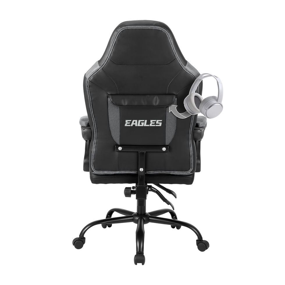 3b2d5fc5-7f9e-4158-96fb-8fb7dcc5952d|135-1037|Philadelphia Eagles Oversized Office Chair|undefined|/product-page/philadelphia-eagles-oversized-office-chair|<p>Enjoy hours of comfort while working or gaming with your new Oversized Office Chair. The large seat and adjustable back height are exactly what you've been looking for. This chair features a special pouch on the back to store your iPad, controller, and headphones. The steel base is durable and the gas lift system allows for easy seat height adjustment. Additionally, a colorful team logo is embroidered directly on the backrest and pouch. This chair is also easy to assemble.</p><p></p><ul><li>Sturdy steel base and padded arms</li><li>275 pound weight capacity</li><li>Backrest adjusts from 90 to 135 Degrees with two handrail mechanisms</li><li>Embroidered logos on backrest and pouch.</li></ul><p></p><p><strong>Product Dimensions and Weight:</strong></p><ul><li>29.5"L x 26"W x 46-49.5"H, 41lbs.</li></ul><p></p><p><strong>This Product is Made of:</strong></p><ul><li> This chair is crafted from vinyl, polyester, and steel</li></ul><p></p><strong>Country of Origin:</strong><ul><li> This chair is made in China</li></ul><p></p>|c0d238_94d2ee7cc76345278b6b257461de4d20~mv2.jpg|