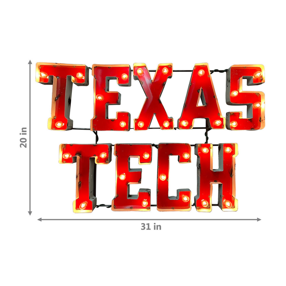27e28beb-6a82-47e5-92ea-5e929e900b7d|546-3034|Texas Tech Lighted Recycled Metal Sign|undefined|/product-page/texas-tech-lighted-recycled-metal-sign|<p>Light up your home or fan cave with this lighted recycled metal sign. Suitable for indoor or outdoor use, this sign is built by hand from recycled metals and includes light strands with clear, incandescent C7 glass bulbs. An authentic style décor piece, the sign features exposed weld spots that give a unique, industrial look to any space.</p><p></p><ul><li>Your team’s name built from recycled metals</li><li>Includes light strands with clear, incandescent C7 glass bulbs.</li><li>Suitable for indoor or outdoor use</li><li>Comes with wall mounts and is ready to hang.</li></ul><p></p><p><strong>This Product is Made of:</strong></p><ul><li>Recycled metal</li></ul><p></p><strong>Country of Origin:</strong><ul><li> This sign is made in the USA from Global Components</li></ul><p></p>|c0d238_62a470ab465d40498ee0da8336dc68b3~mv2.jpg|
