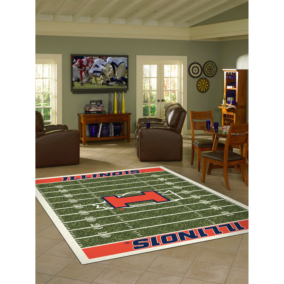 Show your team spirit with this officially licensed area rug, styled to resemble a football field! Made with premium Milliken Certified WearOn® nylon. This rug is fade-resistant and protects against stains and soil with Stainsmart® chemistry. Endura-Loc™ high-performance backing helps ensure the rug always lies flat, and serged edges give your rug the quality that your home and team deserve.